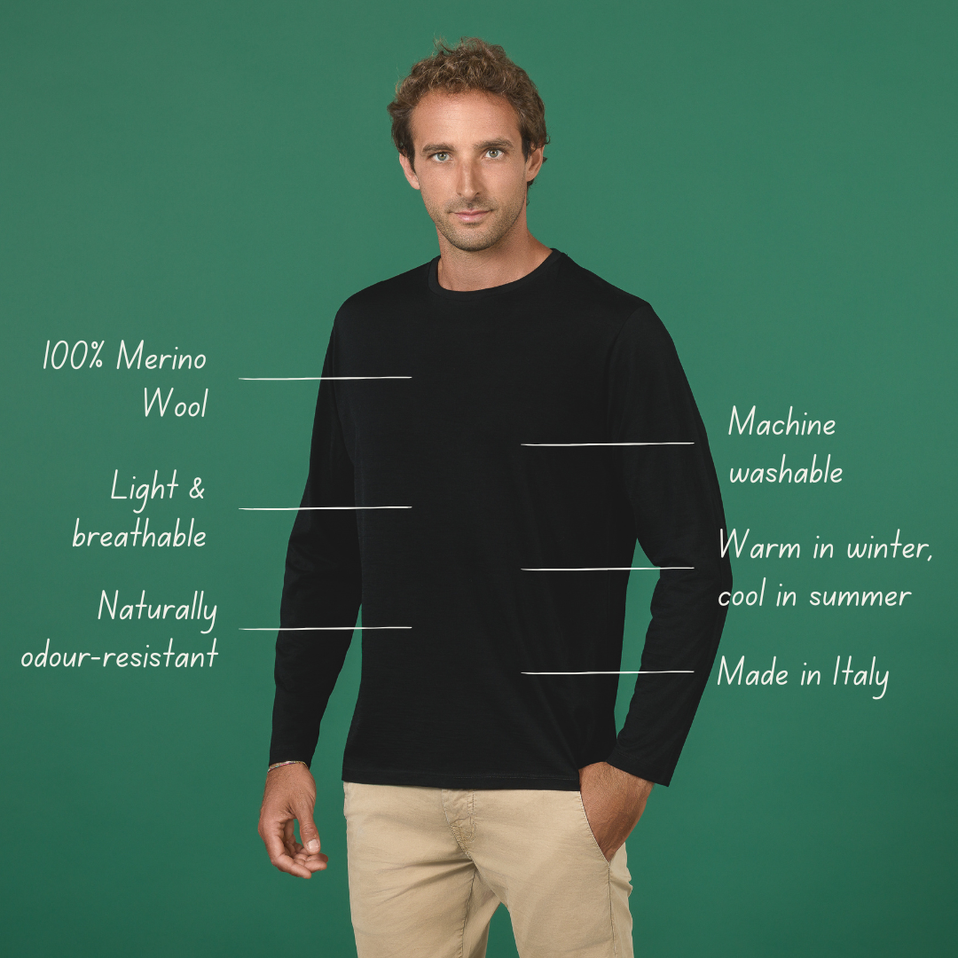 We’ve adapted it for a t-shirt: soft, featherlight, naturally odour-resistant, incredibly breathable, and machine washable.